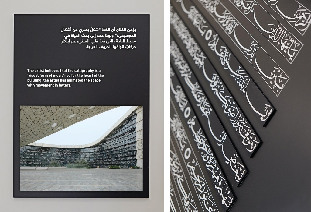 Exhibition showcases the calligraphy of the Minaretein Building, focusing on its relation to the architecture of the building and verses from the Quran which are presented in it. Work on design concept, display design, graphic design, supervision of production and installation.