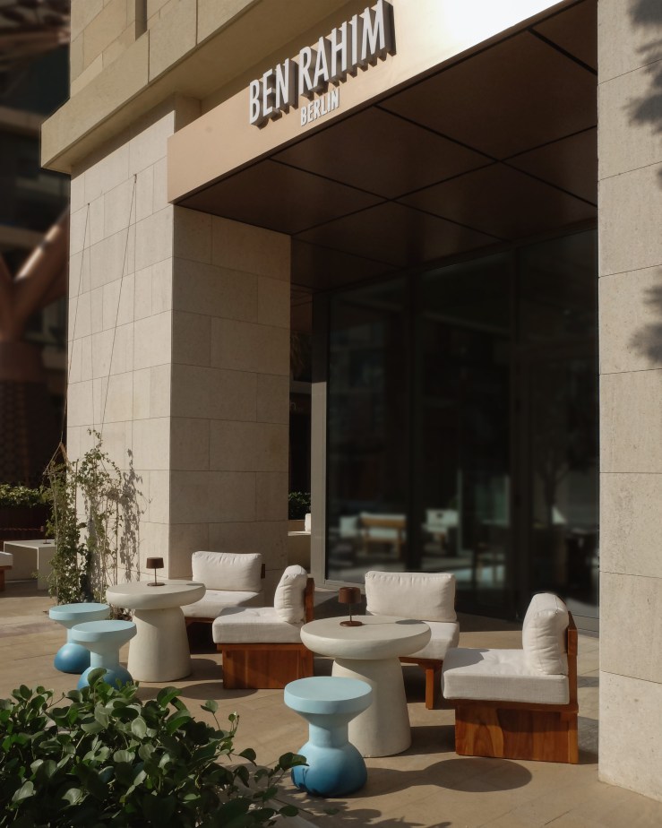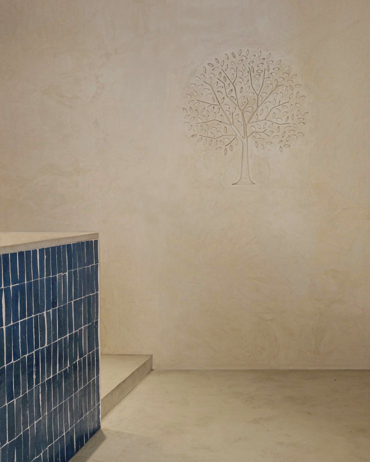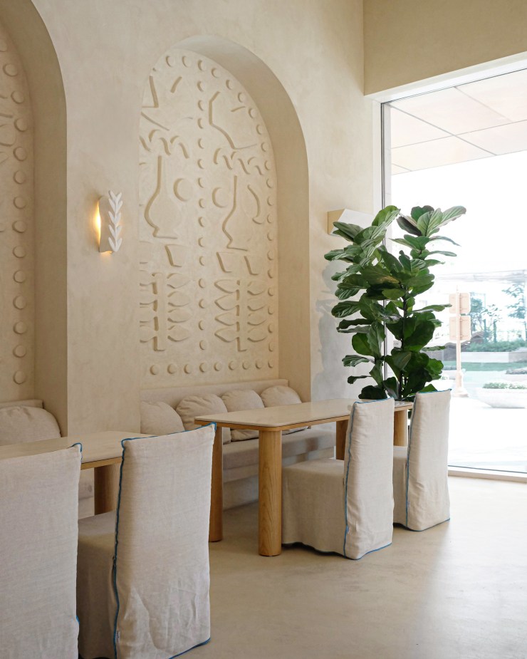 A welcoming space where to calmly savour a speciality coffee with the characteristic flavours by Ben Rahim. Design of the space is inspired from sand tones, washed out in the Tunisian sunlight, textures of old clay buildings, accent colors of water, Tunisian blue, and roasted coffee beans. A mix of textures in same tonalities, earthy and natural, give the space a laid back, serene feeling.