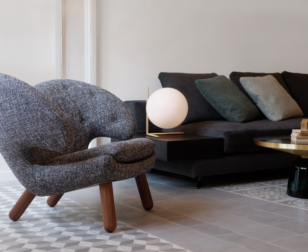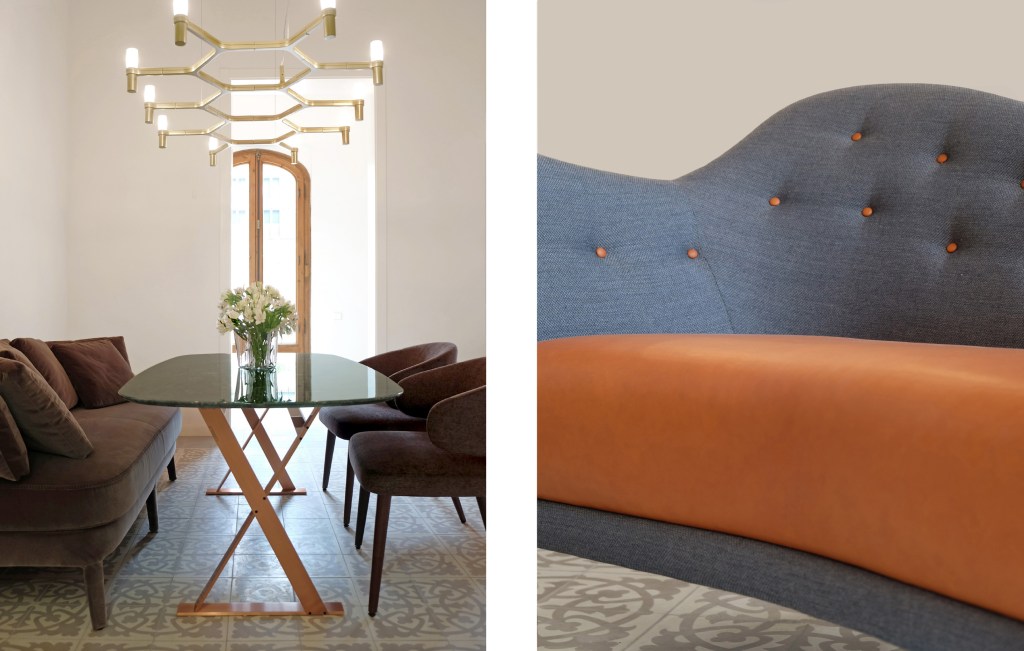 Interior furnishing for a family vacation apartment located in Eixample district of Barcelona, the area that is known for its historical architecture with most of the buildings built at the turn of the 20th century. Visual code of interior is a mix of elegant furniture in rich materials and iconic design pieces as key elements.