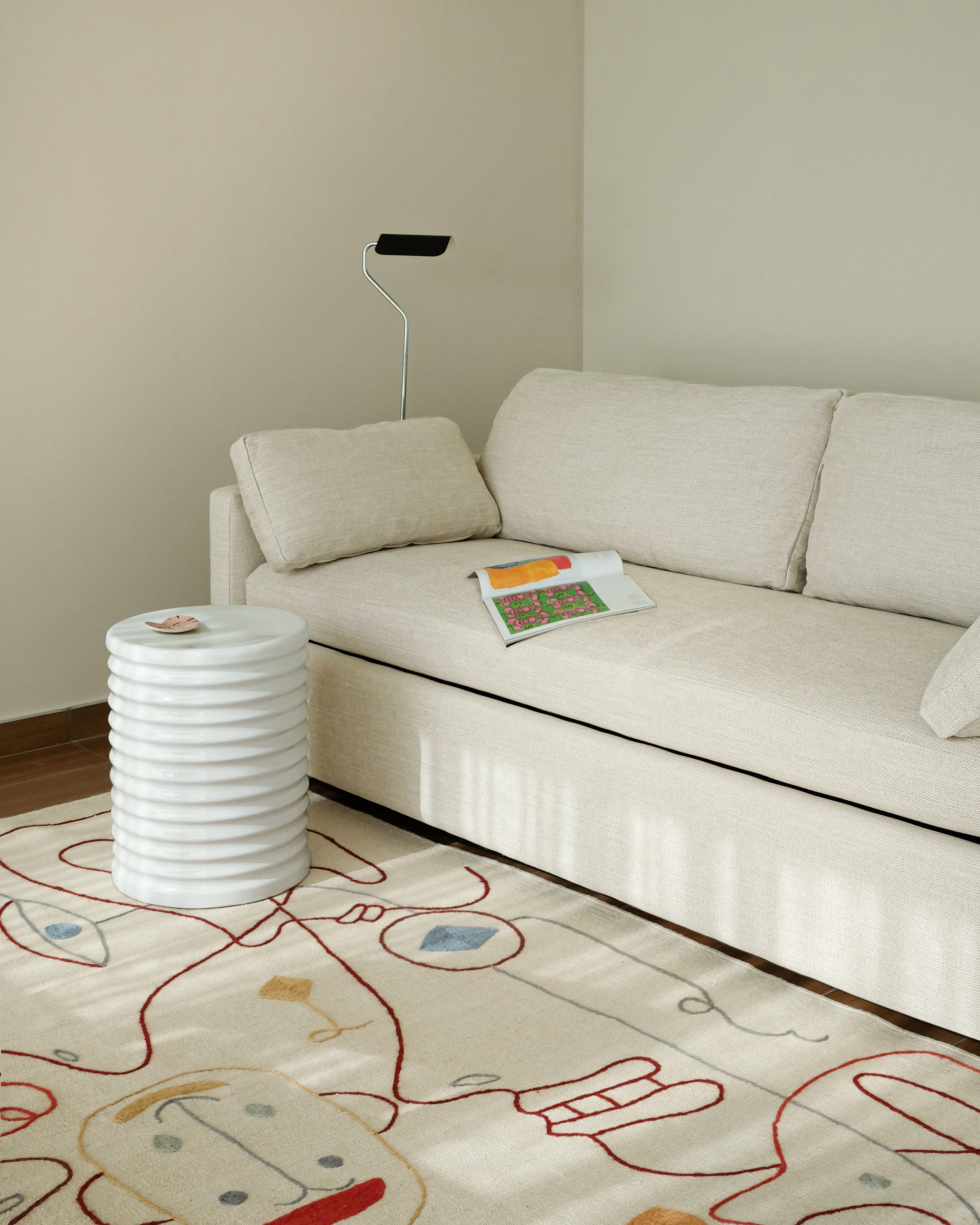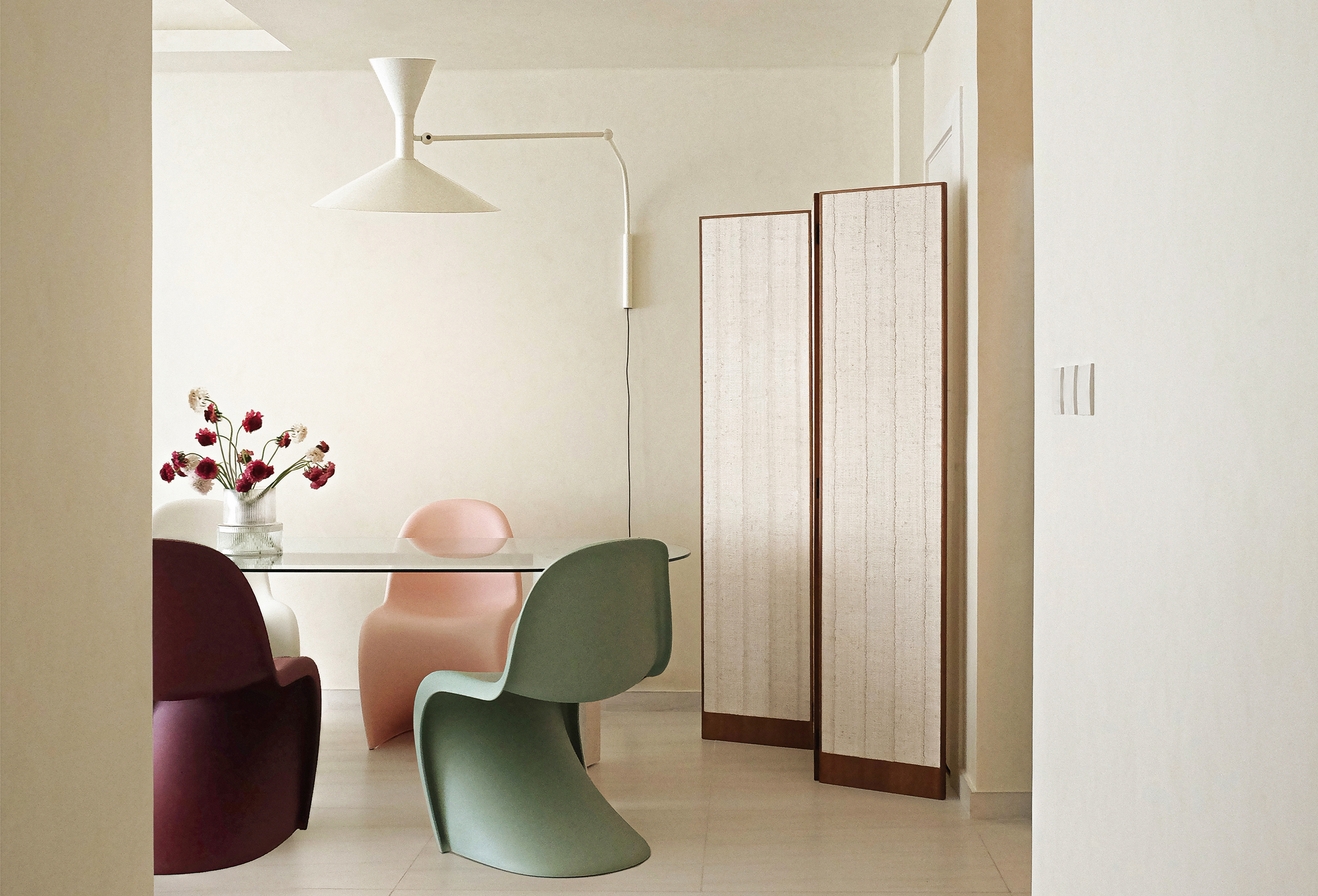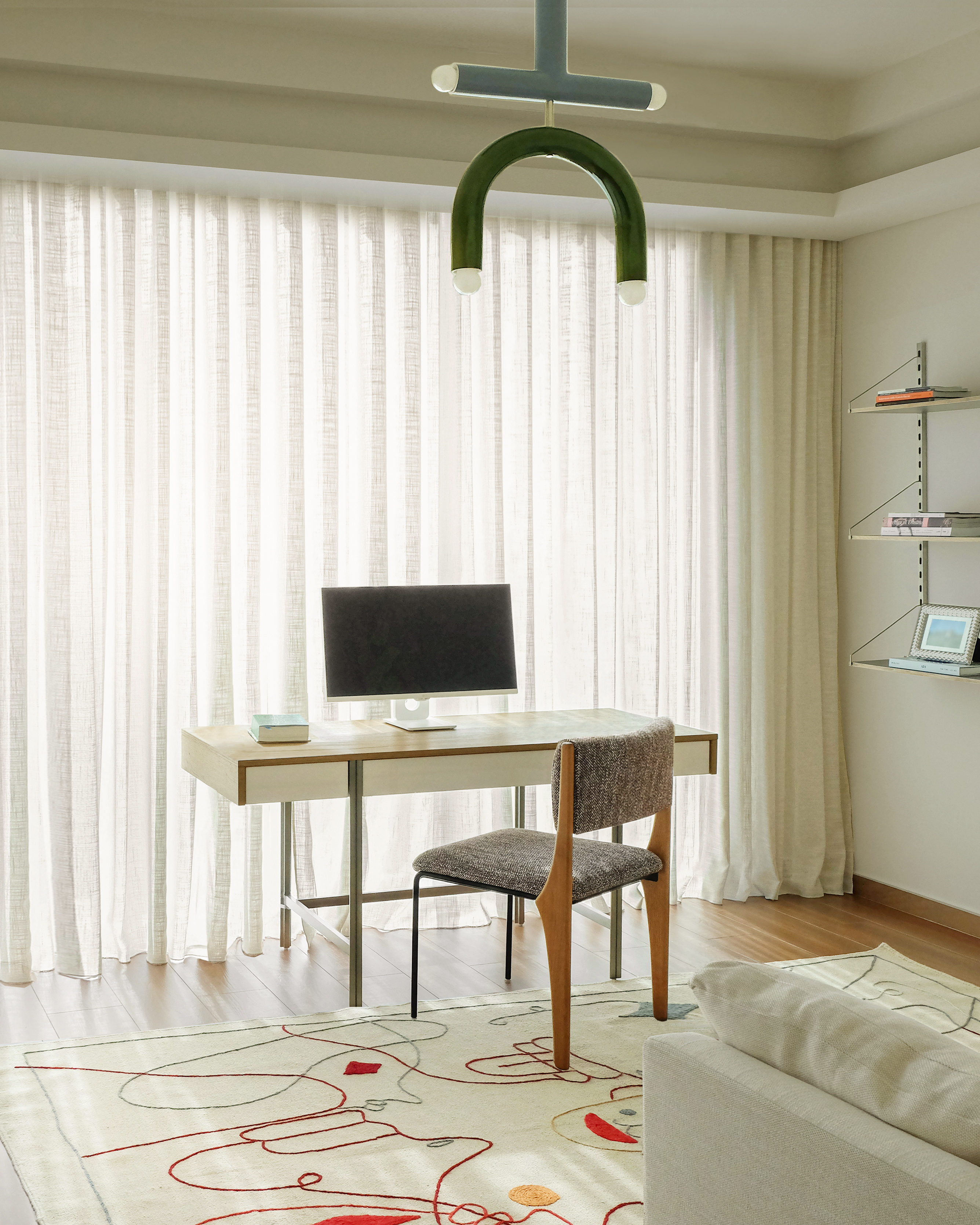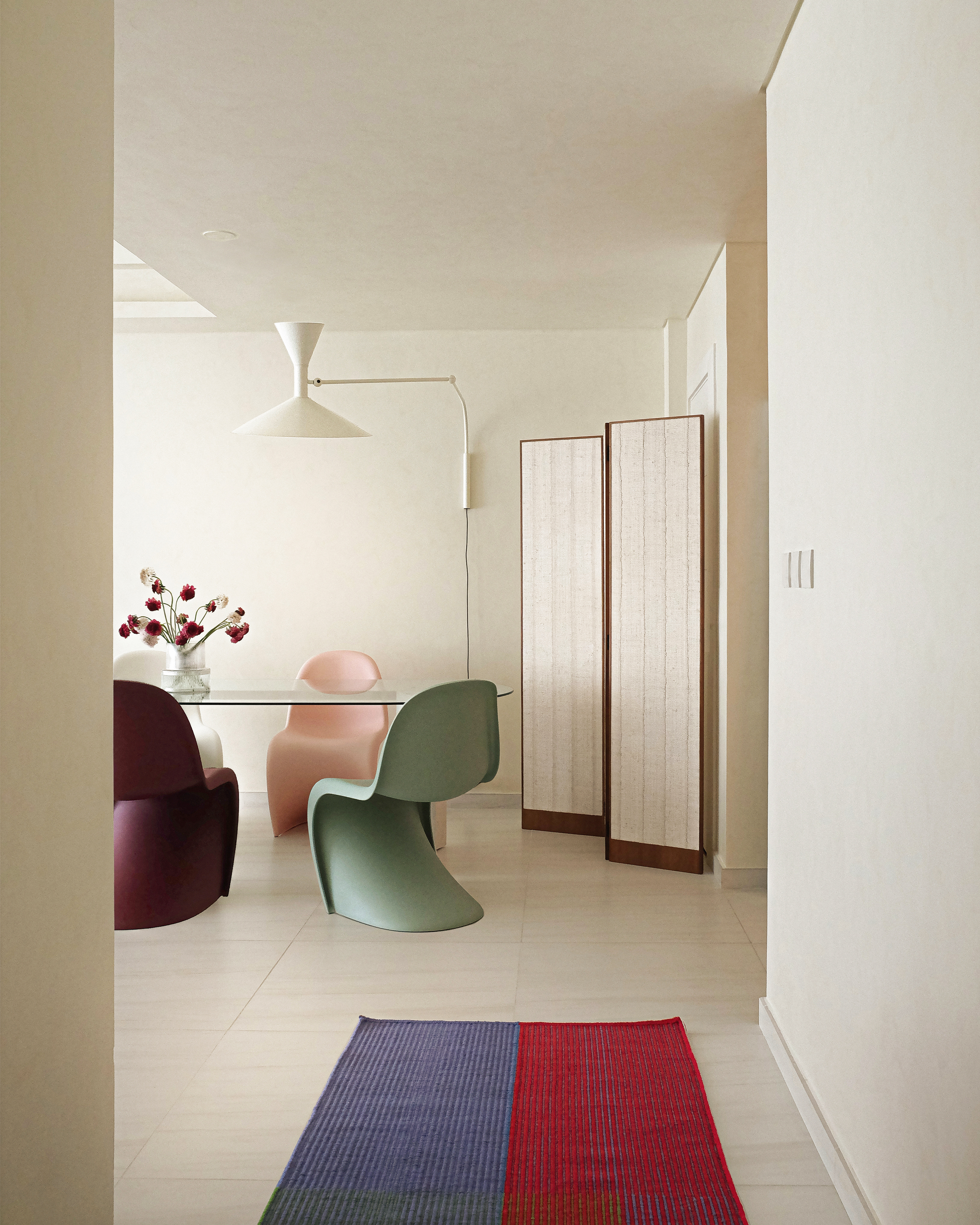 An apartment for a young creative, with a passion for mid-century modern, artsy details and fun colors.