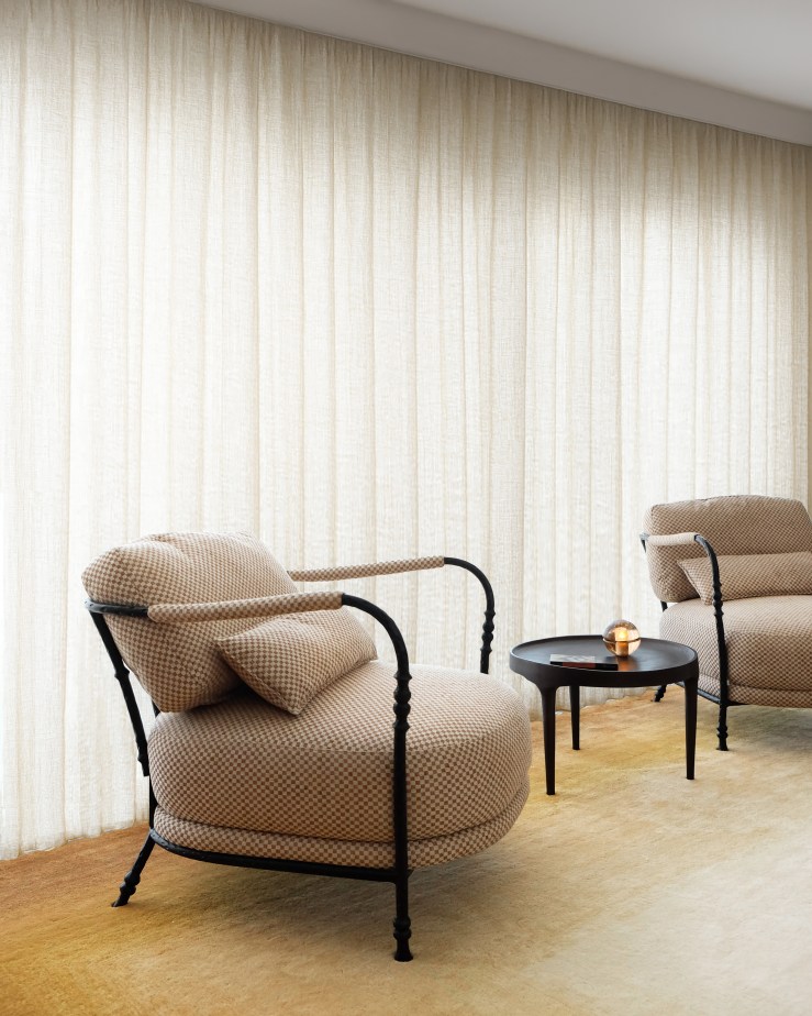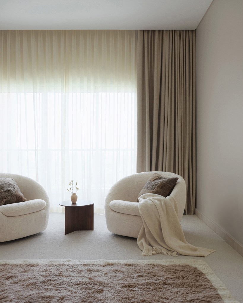 This penthouse, overlooking Doha and its waters, is designed in a vibrant and cheerful mood. It started with a drop of honey, and so it continued. The spirit of the house is an open-plan living space, where all family can gather. Several seating areas and a dining area are designed in a free flow, allowing a balance between interaction with others and spending time at one’s own pace.