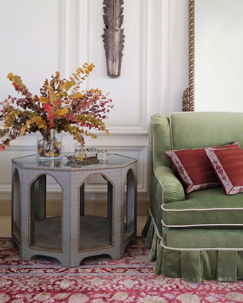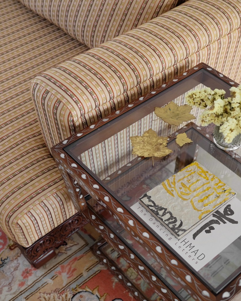 Interiors in this family villa were created homey and personal. In the heart of the house is a spacious majlis, where different styles and pieces exist in harmony.
