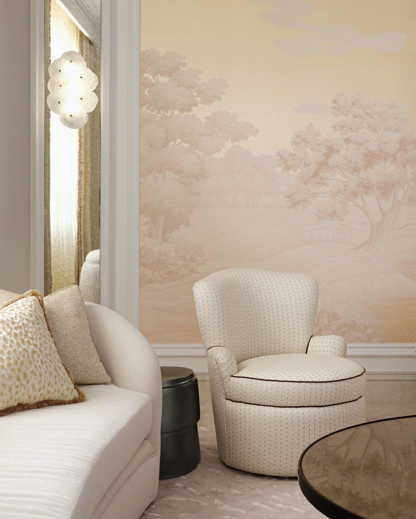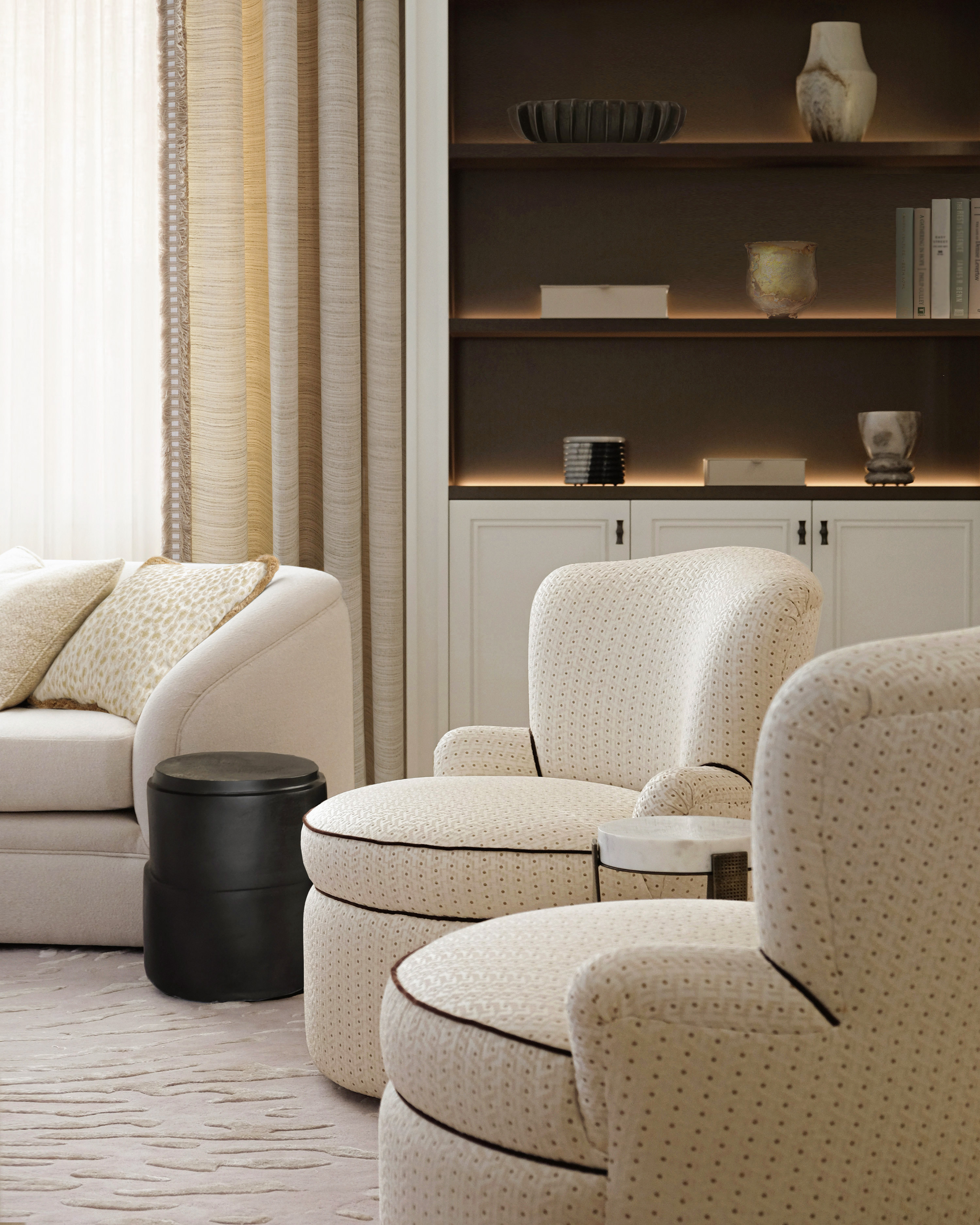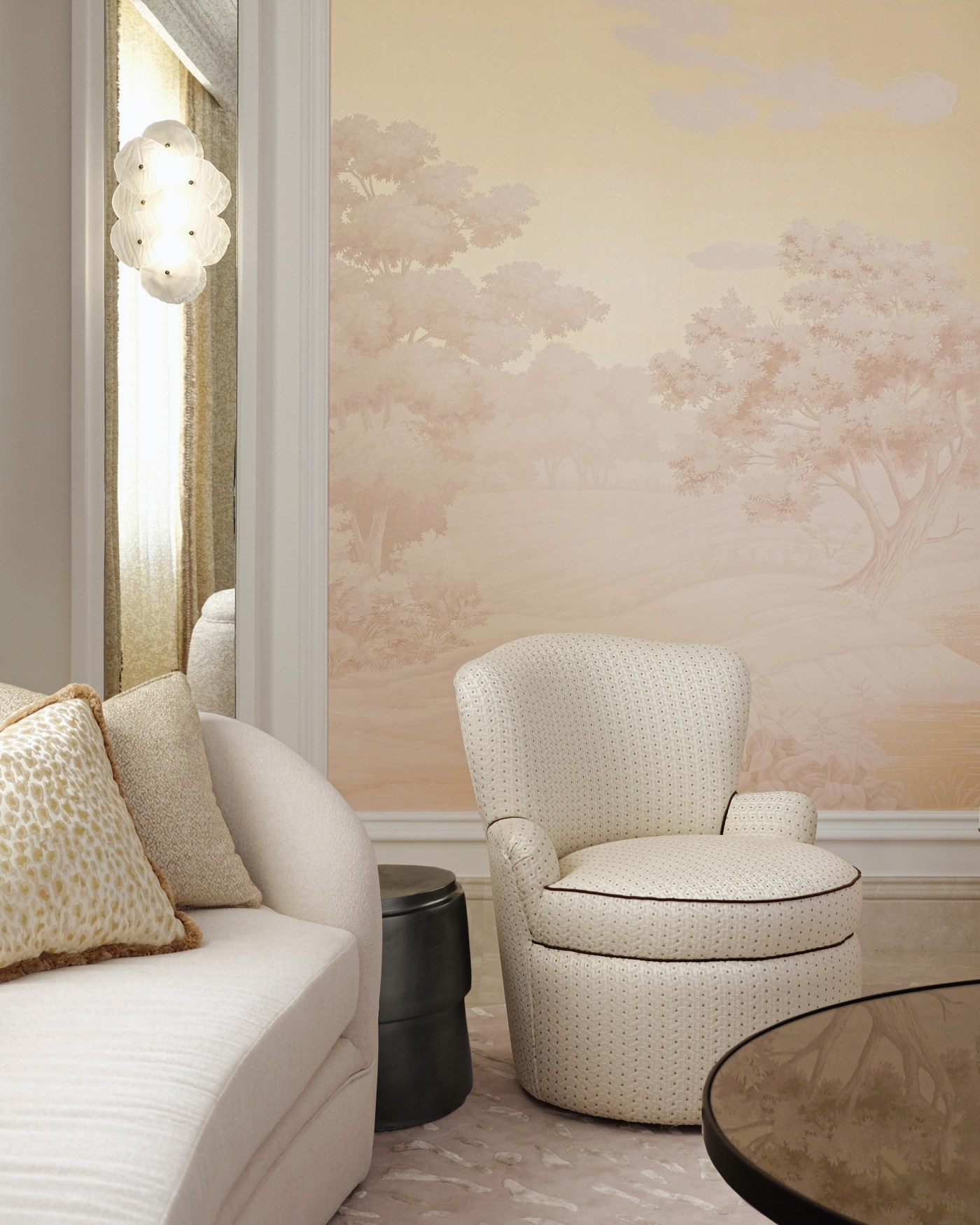 A majlis that harmoniously blends classic and modern elements, with its seating and dining area staged against the backdrop of a historic landscape by Fromental. Soft, elegant color palette and subtle patterns create a tranquil space where to enjoy gatherings.